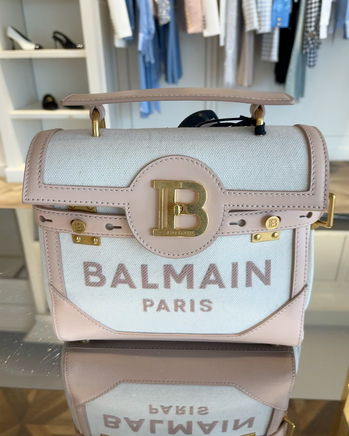 BALMAIN B-Buzz 23 Kanvas ve Deri El Çantası – BALMAIN B-Buzz 23 Canvas Handbag